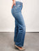 A high-rise wide-leg silhouette, the Ren Jean features a flattering high waist, a relaxed fit through the hips, and an easy, elongated leg shape — now offered in a full-length 32-inch inseam for an even more lengthening effect. Rendered in a medium washed-out tinted indigo, it delivers a soft, lived-in look with everyday versatility. Crafted from soft, breathable regenerative cotton denim blended with EcoMade Fiber for light stretch and natural movement, it offers a comfortable worn-in feeling while maintaining a clean, structured finish.