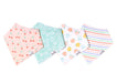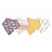 Adjustable nickel-free snaps for ages 3-36 months allow each bib to be adjustable in size to fit newborns and toddlers, with ages ranging from 3-36 months. The snaps are secure, making it difficult for infants and toddlers to unfasten but are easy for parents to snap on and off.
