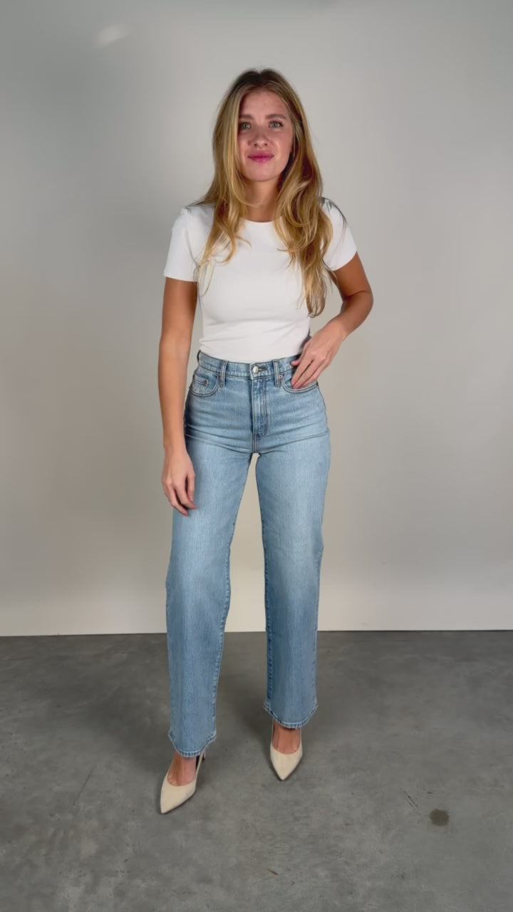 The City Straight in Be Mine Vintage is a high rise straight leg jean in a timeless light blue wash. Clean hems and straight lines make this a versatile jean for any occasion.