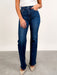 The slim boot that flatters every frame. Evie sits at a high rise with a slim fit through the hips and thighs before opening to a subtle bootcut, creating long, lean lines with just the right amount of flare. The full-length 33" inseam elongates the silhouette, making it endlessly versatile for heels or boots. Crafted from comfort stretch denim in Penthouse, a dark indigo wash with refined fading that adds depth and sophistication.