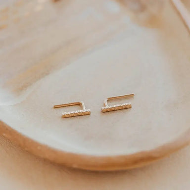DESCRIPTION: These simple studs are officially raising the BAR. Pair with your other favorite earring, or wear these as the main act. A favorite, ...