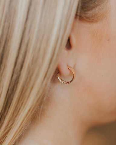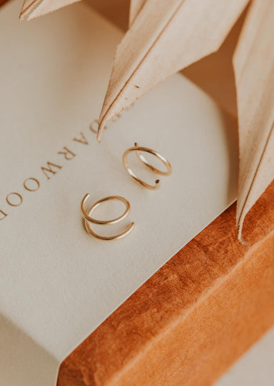 DESCRIPTION: Make a single piercing look like a double piercing with these Tiny Twist Earrings! Perfect for all day, everyday wear - twist them i...
