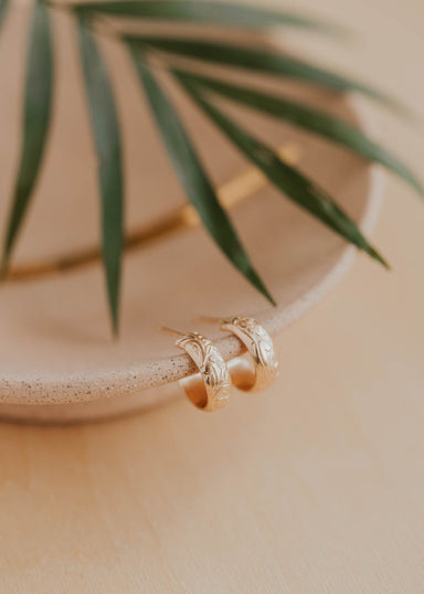 DESCRIPTION: * Final Sale Hand soldered onto a post, these hoops provide a bold look with floral detailing on the inside. The perfect for adding ...