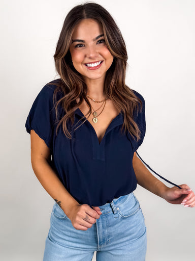 SIZE & FIT: Model is 5'6 and is wearing a size S. MATERIAL & CARE: 75% Cotton, 25% Polyester | Hand Wash Cold DESCRIPTION: V -Neckl...