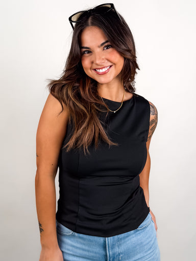 SIZE & FIT: Model is 5'4 wearing size S. MATERIAL & CARE: 100% Polyester | Hand Wash Cold DESCRIPTION: Rounded Neckline Sleeveless R...