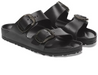 The BIRKENSTOCK Arizona is a genuine classic. Modeled on the cork sandal, this version is made from EVA. The high-quality, odor-neutral EVA has been tested for harmful substances and combines numerous positive attributes: it is very light, highly elastic, water-resistant, and skin-friendly and offers the comfort you have come to expect from BIRKENSTOCK. This version features our popular Big Buckle made from a stainless synthetic material and makes an impression with its durability and minimalist design.
