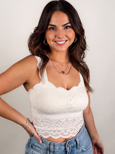 SIZE & FIT: Model is 5'4. MATERIAL & CARE: 100% Cotton | Hand Wash Cold DESCRIPTION: Rounded Neckline Scalloped Hem Long Sleeves Wi...