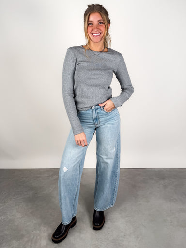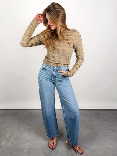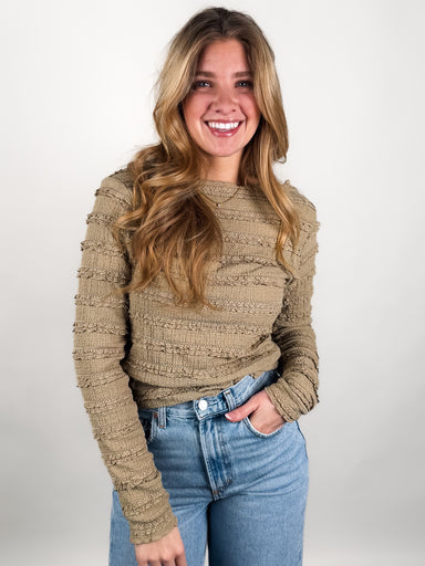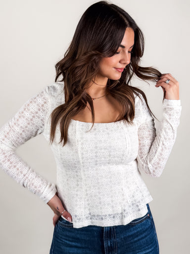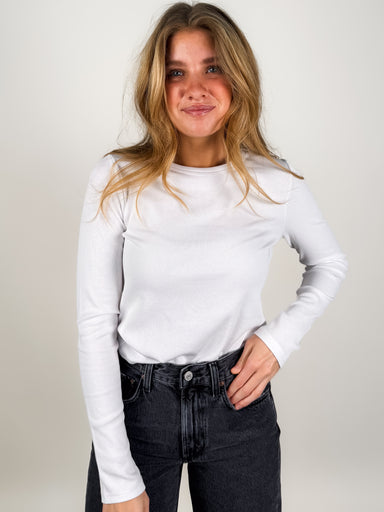 DESCRIPTION: Long sleeved pointelle Crew neckline Lightweight SIZE & FIT: Style is fitted. Model is 5'8 and is wearing a size S. Measure...