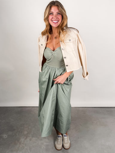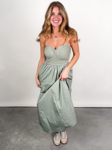 DESCRIPTION: Lined V-Neckline Smocked Waist Maxi Length SIZE & FIT: Style is relaxed. Model is 5'8 and is wearing a size S. MATERIAL &a...
