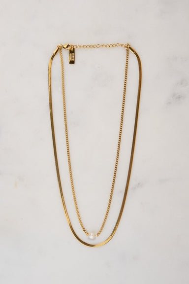 DESCRIPTION: * 18k gold plated layered necklace * over stainless steel * freshwater pearl * lead / nickel free * made with ethically sourced mat...
