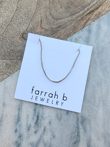 DESCRIPTION:   Non-Tarnish 16K Plated Chain, Hypoallergenic  Measurements:  Adjustable 15"-19" Jewelry is Final Sale