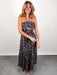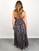This floral maxi dress features a crinkle georgette fabric, adjustable halter ties, and an elastic back to ensure a great fit.