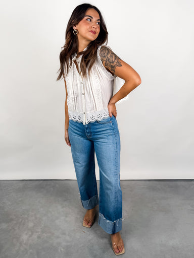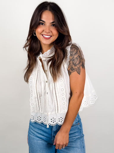 SIZE & FIT: Model is 5'4 and is wearing a size S. MATERIAL & CARE: 100% Cotton | Hand Wash Cold DESCRIPTION: Button Front Eyelet La...