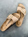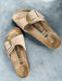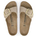 An icon since 1963, the Madrid sandal redefined the slip-on look with a single strap. This season, soft nubuck leather pairs perfectly with a big, gold matte buckle—sized up to make a statement Complete with go-all-day comfort from an original contoured BIRKENSTOCK footbed.