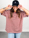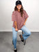 Style is oversized. Model is 5'8 and is wearing a size S.