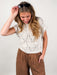 Style is relaxed. Model is 5'8 and is wearing a size S.