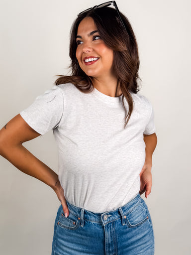 SIZE & FIT: Model is 5'4 and is wearing a size S. MATERIAL & CARE: 95% Cotton, 5% Spandex | Hand Wash Cold DESCRIPTION: Rounded Nec...