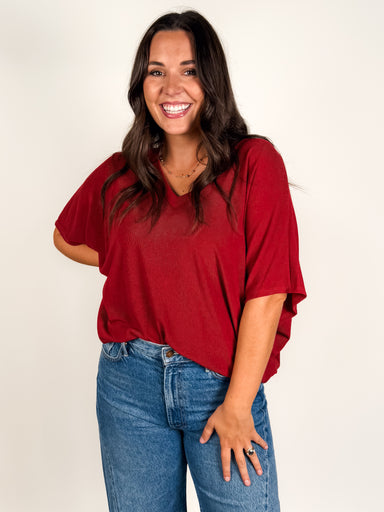 DESCRIPTION: V-Neckline Side Pocket Short Sleeve Crepe Hachi Fabric SIZE & FIT: Style is relaxed. Runs true to size. Style is relaxed. Mo...