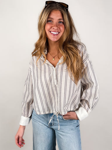 DESCRIPTION: Drawstring Waist Dropped Shoulder Partial Buttons at Front Lightweight SIZE & FIT: Style is relaxed. Model is 5'8 and is wea...