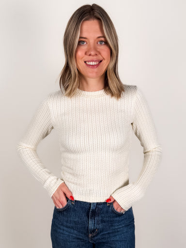 DESCRIPTION: Crew Neckline Long Sleeves Textured Knit Lightweight SIZE & FIT: Style is fitted. Model is 5'5 and is wearing a size S. MAT...