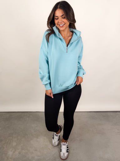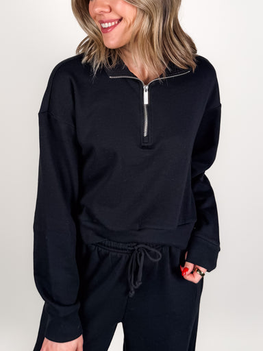 Best SellerDESCRIPTION: Half Zip Long Sleeves Dropped Shoulder Shrunken Silhouette SIZE & FIT: Style is relaxed. Model is 5'5 and is wearing a size ...
