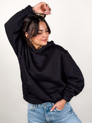 DESCRIPTION: Hoodie Front Pocket Dropped Shoulder SIZE & FIT: Style is relaxed. Model is 5'4 and is wearing a size S. MATERIAL & CA...