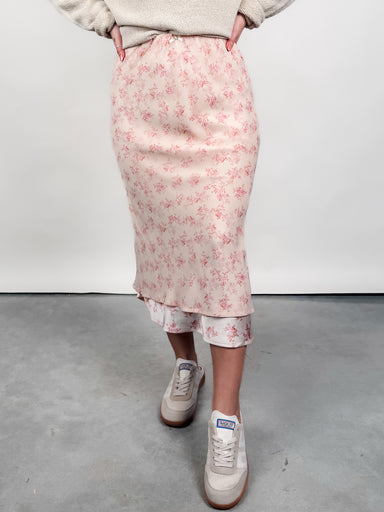 DESCRIPTION: High rise Midi Length Elastic waistband Midweight Heavy soft wash Regular fit SIZE & FIT: Skirt length is 35" Style is fit...