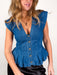 Oh-so flattering in every way, this denim vest top is featured in a button-front design with a pleated peplum for the perfect flared fit.