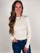Style is fitted. Model is 5'5 and is wearing a size S.