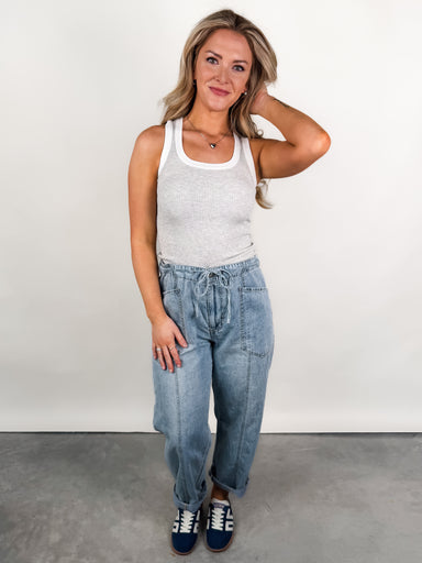 SIZE & FIT: Model is 5'8 and is wearing a size S. MATERIAL & CARE: 100% Cotton | Hand Wash Cold DESCRIPTION: Elastic Waist Functional...