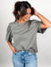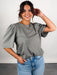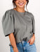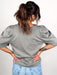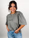 - Soft knit top with gentle puff sleeves for subtle volume -