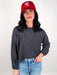 Style is relaxed. Model is 5'5 and is wearing a size S.